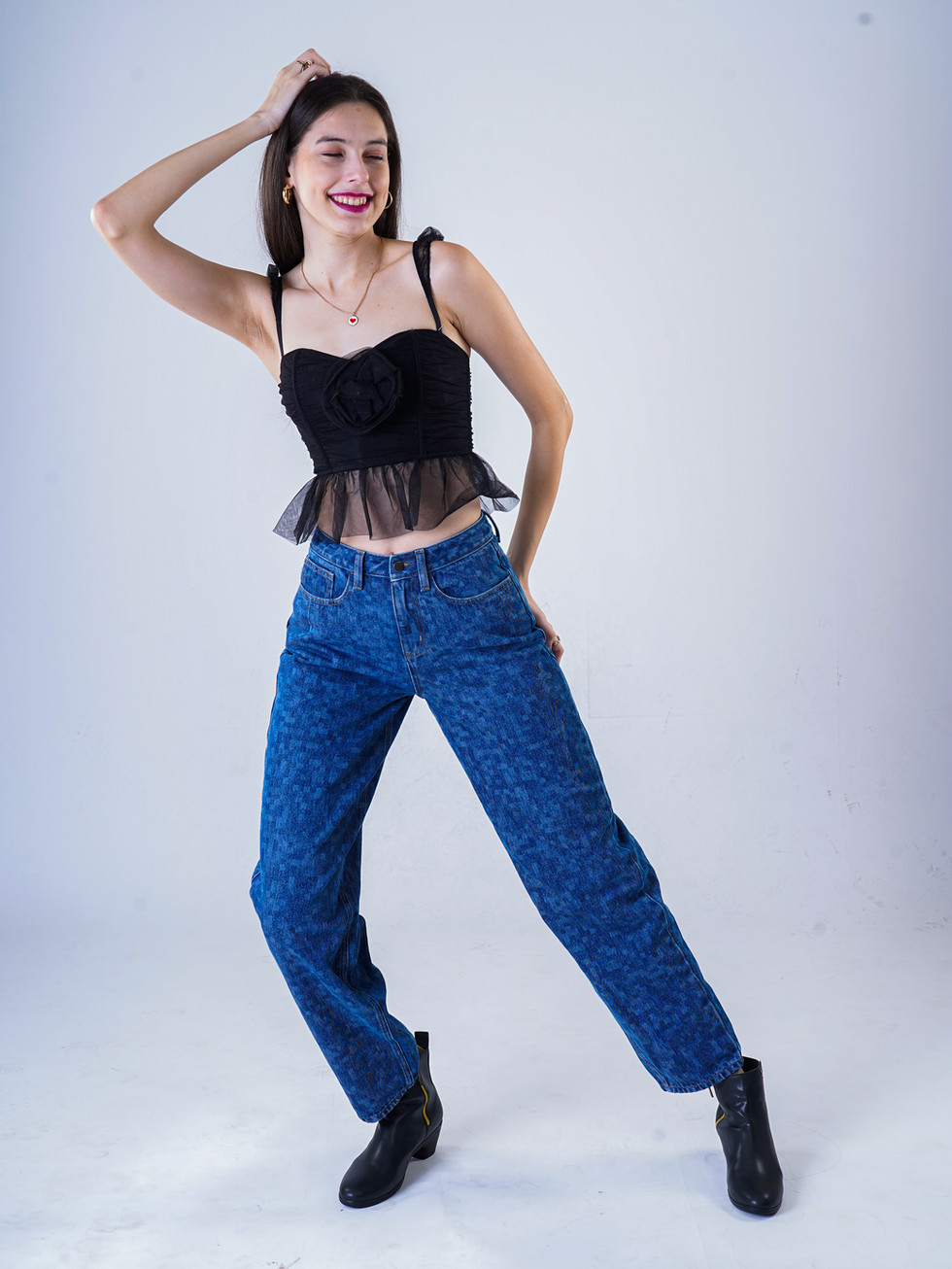 Laser straight leg denim pant